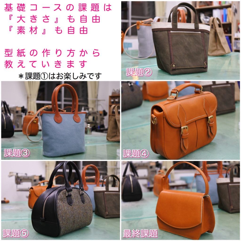 基礎すべて6つ習得していただいても構いませんし、基礎コースの途中で今まで習った型紙から、自分の作りたい鞄やバッグを作って頂いても構いません。
